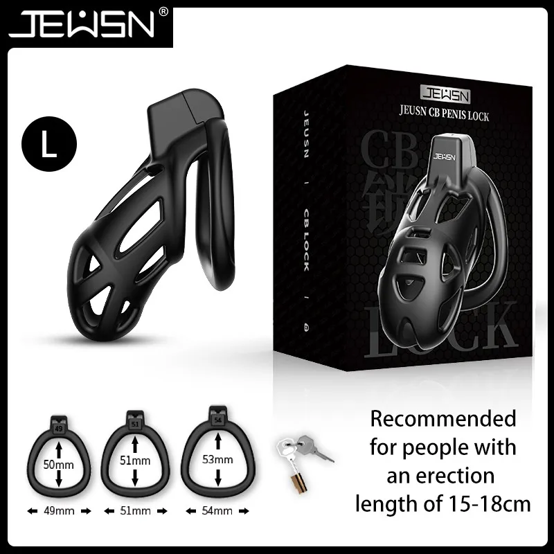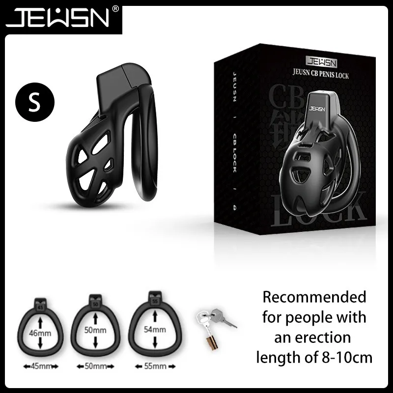 Durable ABS and silicone chastity cage from Jeusn, complete with three ring sizes, lock core, and keys. Designed for comfort, security, and discreet control, it’s delivered with full privacy protection.