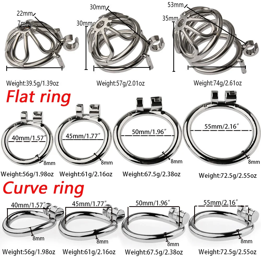 A precision-crafted stainless-steel chastity cage available in small, medium, or large sizes. Features two ring styles for personalized comfort and secure restraint, complete with a sturdy lock for confident, long-term wear.